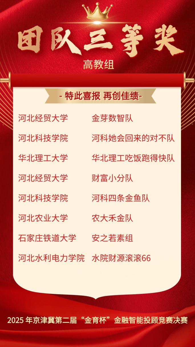 学子组队参加了“京津冀第二届金育杯金融智能投顾竞赛决赛”,两支代表队携手并进,取得了“高教组团队三等奖”和“最佳投资顾问”个人奖的好成绩,彰显了成人影片