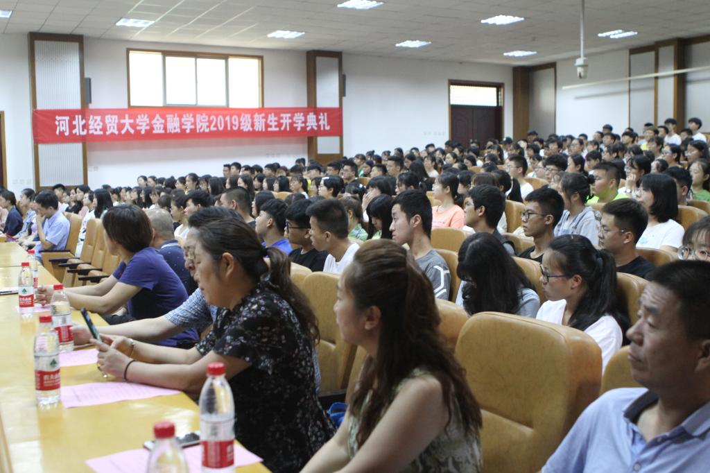 在c201举行2019级新生开学典礼。学院党委书记贾喜环、院长王重润、副院长刘颖、杨雪美、各系主任副主任出席典礼,学院全体辅导员、2019级全体新生、助理班主任及部分新生家长参加,会议由学院党委副书记王冬坡主持。
