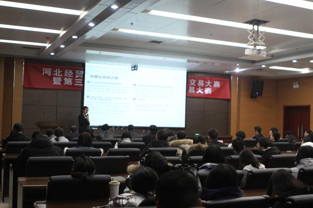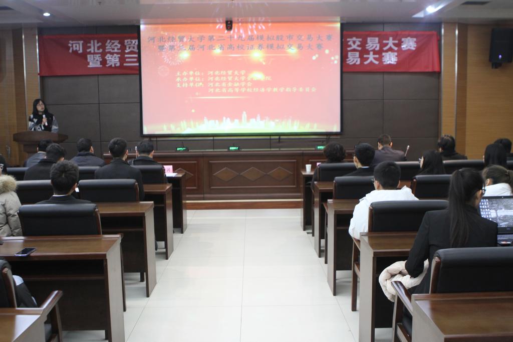 12月21日下午,我校第二十九届模拟股市交易大赛暨第三届河北省高校证券模拟交易大赛团体赛决赛及颁奖仪式在第三会议室顺利举行,来自河北工业大学、石家庄铁道大学、河北地质大学、华北理工大学、成人影片