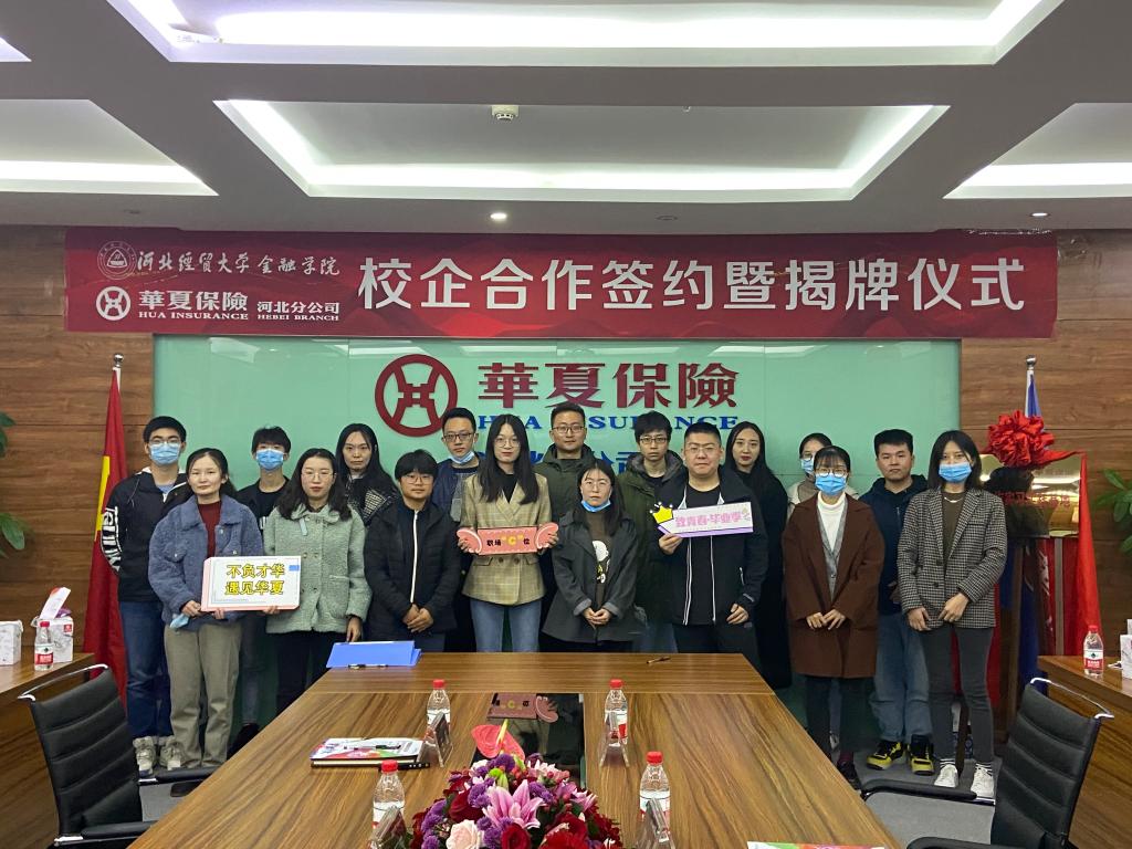 副院长刘颖,副院长杨雪美,学科建设办公室主任、研究生辅导员董岚及20名保险、金融专业在校研究生参加签约揭牌仪式。仪式由组织人事处董青主持。