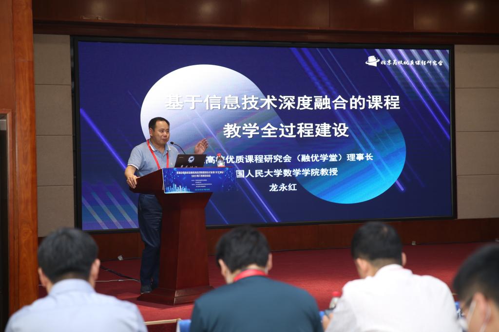 中国人民大学龙永红教授作了题为“基于信息技术深度融合的课程教学全过程建设”的主题报告。从全面课程建设的内涵和要求、基于信息技术深度融合的课程教学全过程建设方案、北京高校优质课程研究会介绍、北京高校优质课程研究会供选课程流程四个方面展开,详细讲述了利用信息化教育平台课程构架的全过程。