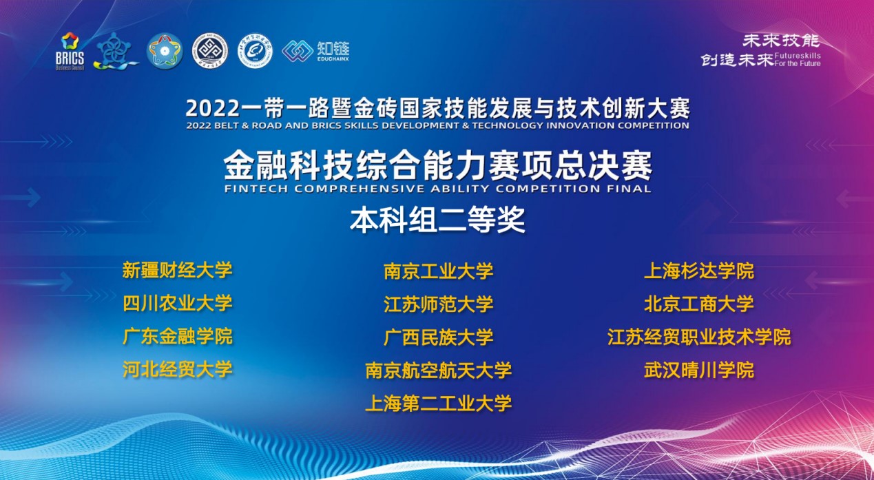 “一带一路暨金砖国家技能发展与技术创新大赛”是金砖五国最高领导人认可的、政府间国际组织金砖国家工商理事会批准的国际竞赛,2017年首届举办,五年来,累计13万余人次参与了竞赛及相关会议、展览展示、技术交流等活动,成为推动金砖国家间教育合作、技能开发和人文交流活动的重要平台。作为该大赛的核心赛项之一,金融科技综合能力赛项自9月启动以来,受到了社会各界的广泛关注与全国高校的积极响应,陆续在北京、山东、江苏、湖北、河北、广东等二十余省区举办省赛。各高校参赛队伍通过在校内赛、省赛激烈的角逐,最终,来自全国不同高校的近120支代表队在总决赛的现场齐聚一堂,通过分布式云端竞赛的方式参加总决赛。