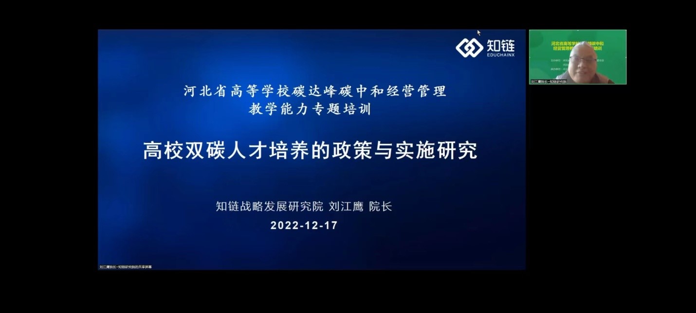 12月17日,河北省高等学校碳达峰碳中和经营管理教学能力专题培训在线上举行。本次培训由河北省高等学校经济学教学指导委员会和成人影片