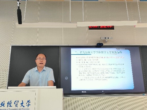 学位授予工作实施细则(冀经贸学科〔2022〕24号)。范院长重点介绍了硕士学位(专业型)、硕士学位(学术型)的授予条件、硕士学位申请资格审核、硕士学位论文要求、硕士学位论文评阅、硕士学位论文答辩、硕士学位授予等内容。