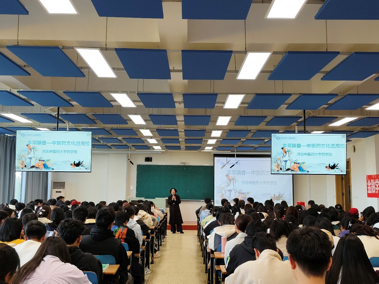 本次活动分为“中医药知识讲解”、“中草药手工体验”两个环节。在讲座环节,河北中医药大学药学院副教授刘宇围绕“弘扬中医药传统文化”这一主题,用生动的语言为同学们介绍了中国的传统医药文化、中医的智慧以及中医药产业情况,聆听名医治病救人故事,探知阴阳五行奥秘,让同学们深刻了解了中华民族的瑰宝——中医药,感受传统文化的历久弥新。