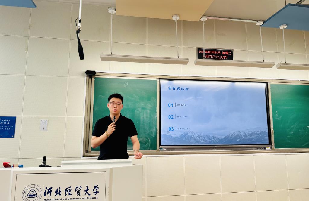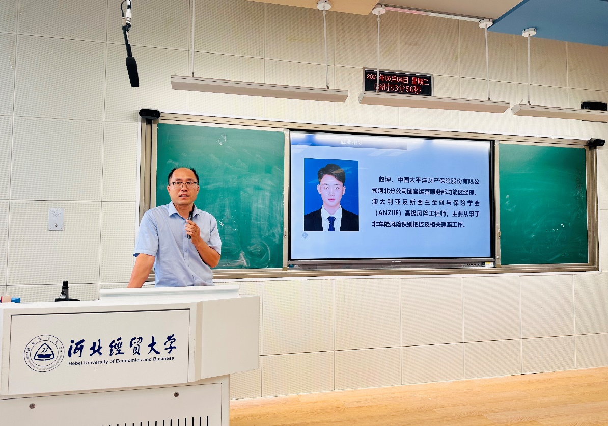邀请优秀校友、中国太平洋财产保险股份有限公司河北分公司团客运营服务部功能区经理、澳大利亚及新西兰金融与保险学会(ANZIIF)高级风险工程师赵博为学院学子做了一场关于金融保险行业职业生涯规划的辅导讲座。研究生100余人参加了本次讲座,讲座由副院长范庆祝主持。