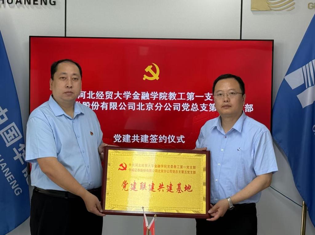 李艳辉与长城证券北京分公司党总支第五党支部代表车凯磊签署党建结对共建协议书。