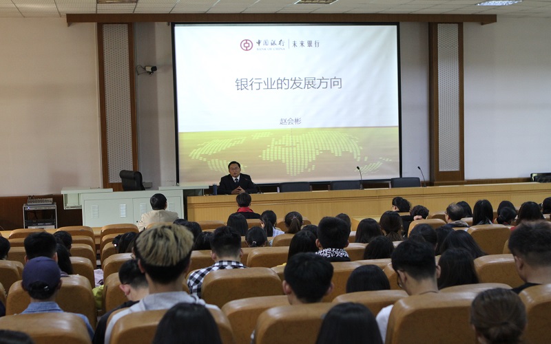 在c201举办“银行业发展方向”专题讲座,中国银行河北省分行营业部总经理赵会彬应邀主讲。学院院长王重润出席,讲座由副院长李建英主持,学院全体教师以及400余名师生参加。