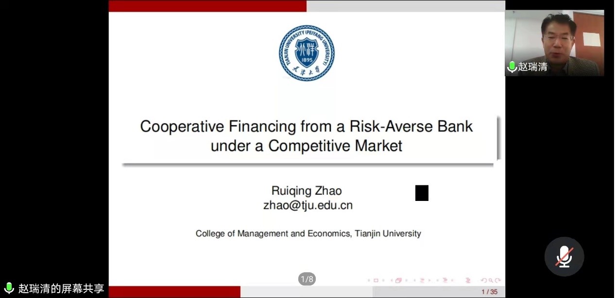 邀请天津大学管理与经济学部赵瑞清教授做了题为《Cooperative Financing from a Risk-Averse Bank under a Competitive Market》的讲座。成人影片