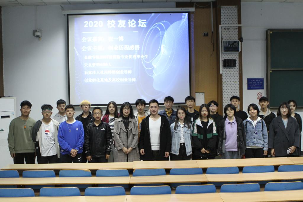 2007级保险专业优秀毕业生﹑天良营销创始人﹑石家庄人社局特聘创业导师﹑创业孵化基地及高校创业导师祝一博分享创业历程感悟。