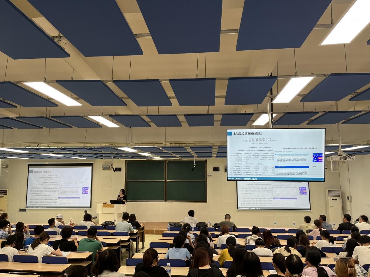 范庆祝首先对保险学专业进行介绍,并通过图表数据分析展示了往届保险专业学生就业、考公考研情况。曹琳结合自身工作经验系统介绍了金融学专业的发展前景、CFA的历史发展和当前社会对CFA人才的需求等同学们关注的内容。窦丽琛对金融学类专业分流的原则、专业设置和办法进行了讲解,对金融学CFA方向班进行了介绍。与会嘉宾针对学生们关于专业选择的问题逐一进行了详细解答。