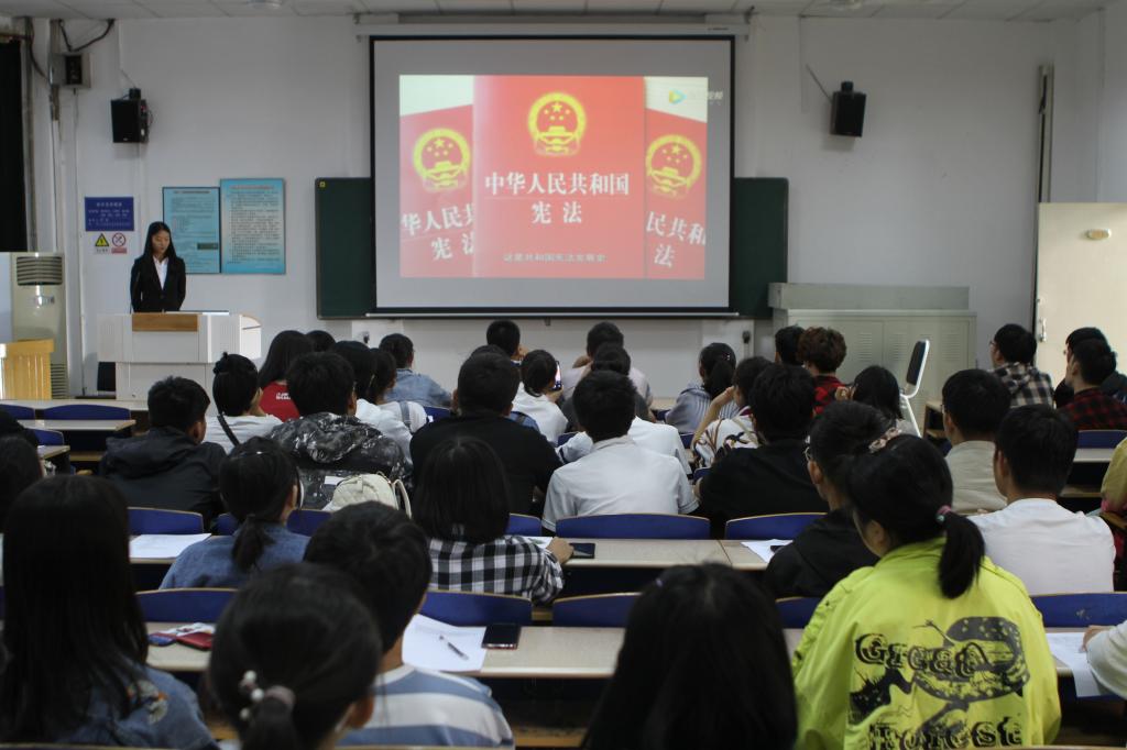 在二教201成功举办宪法普及教育活动。19级金融二班曹茉薇同学主持活动,19级100余名学生参加。