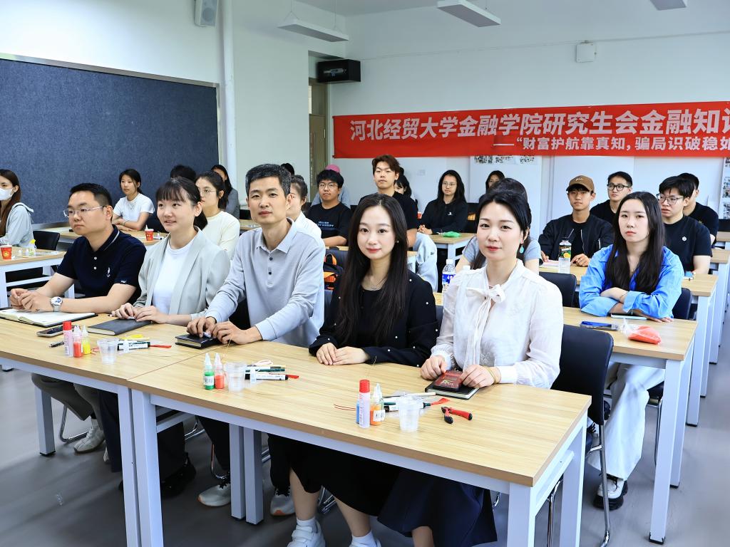 张蕊、边政文、张一帆和崔雨奇分享金融知识与反诈知识,河北科技大学艺术学院师生50余人共同参加。